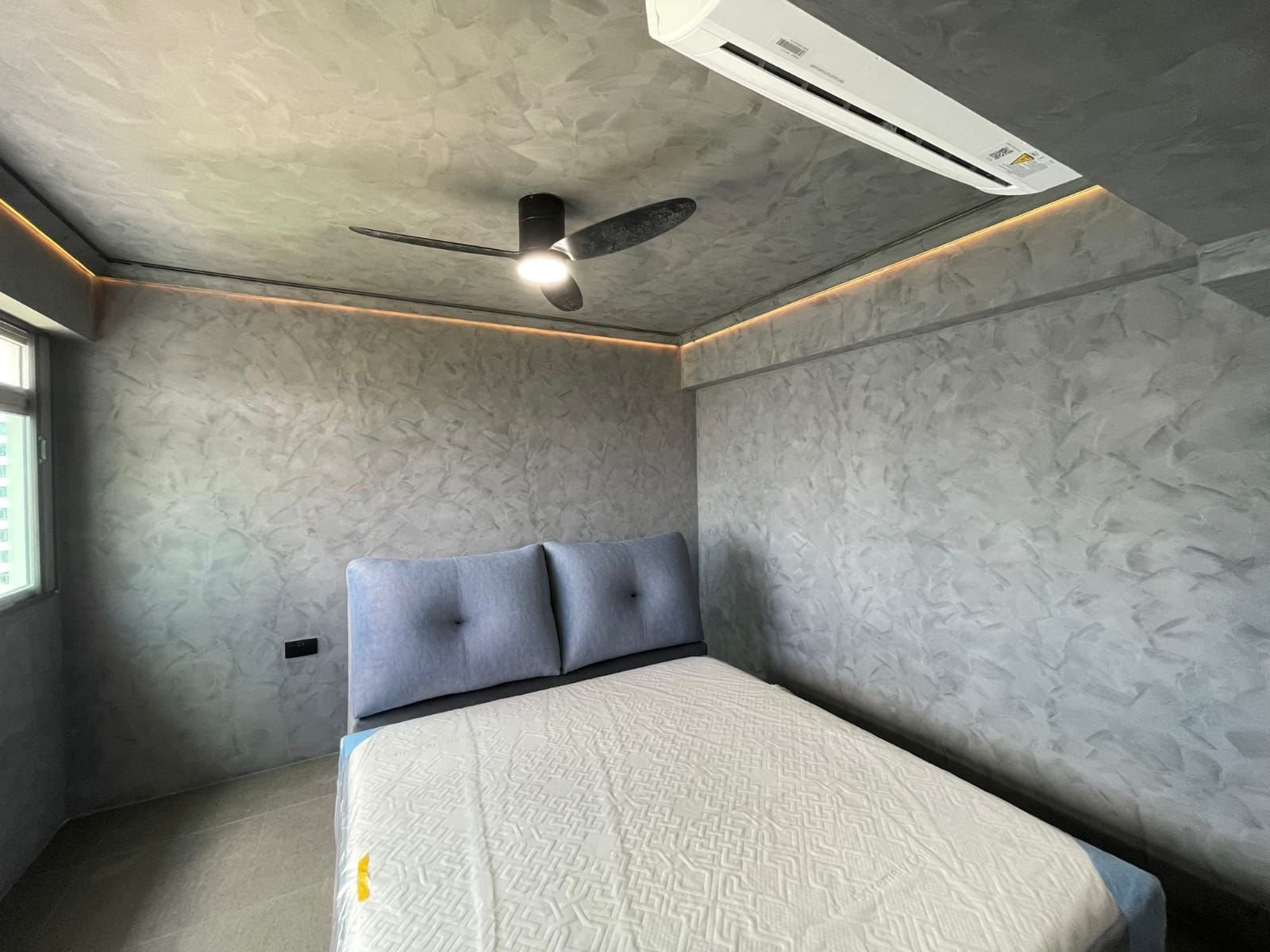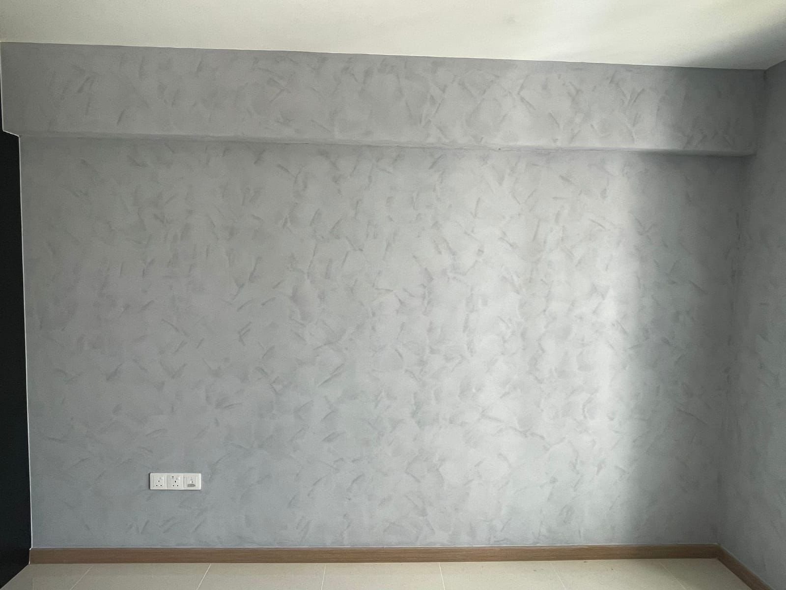 We’ll create a soft texture with matte finish (zero chemical smell, zero VOCs), because we know that Singapore’s humid walls need to breathe, not suffocate under synthetic coatings.